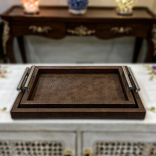 Leatherite Serving Trays With Metallic Handels Set Of 2 (2 Colors)