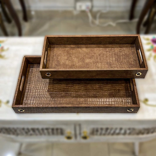 Leatherite Serving Trays Set Of 2 (4 Colors)