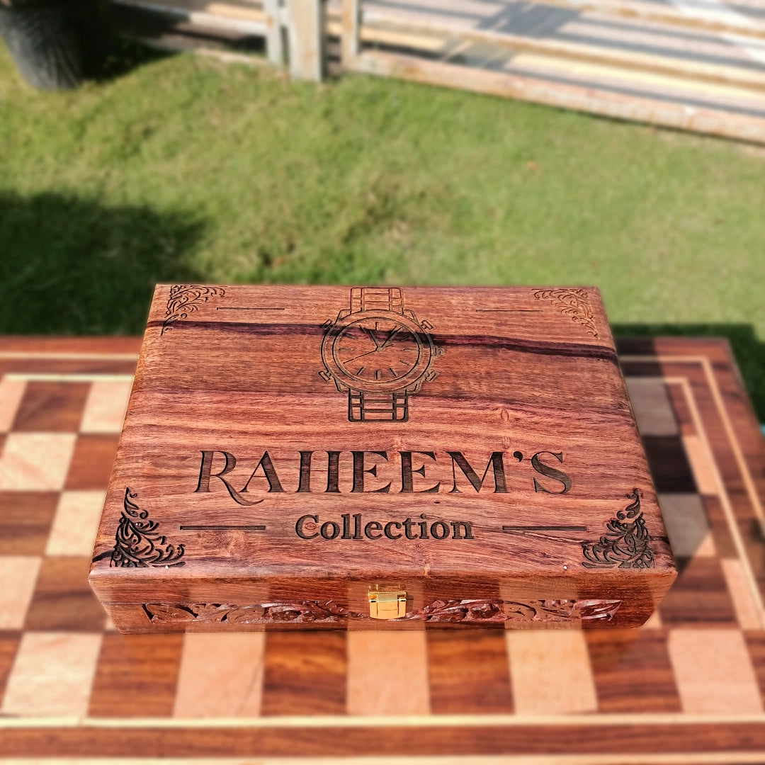 Introducing "Apna Box Apni Marzi" β a customizable wooden storage box crafted from premium seasoned wood. Available in two sizes: 12 x 8 inches and 12 x 12 inches (external dimensions), this elegant box is perfect for organizing your personal essentials like watches, rings, cufflinks, wallets, sunglasses, and more.