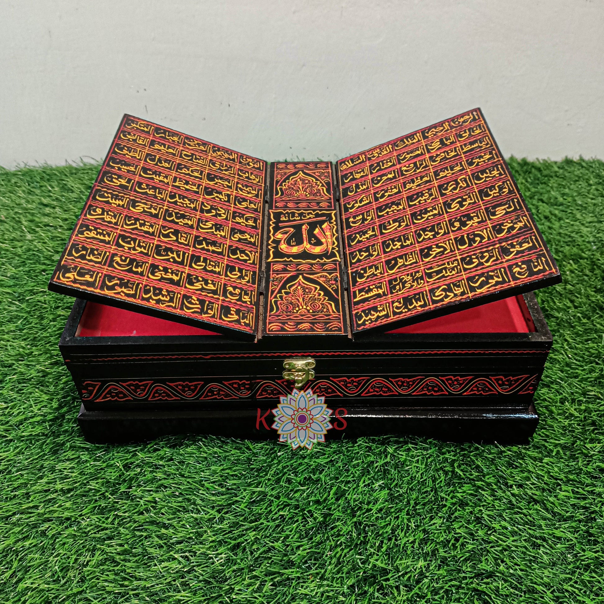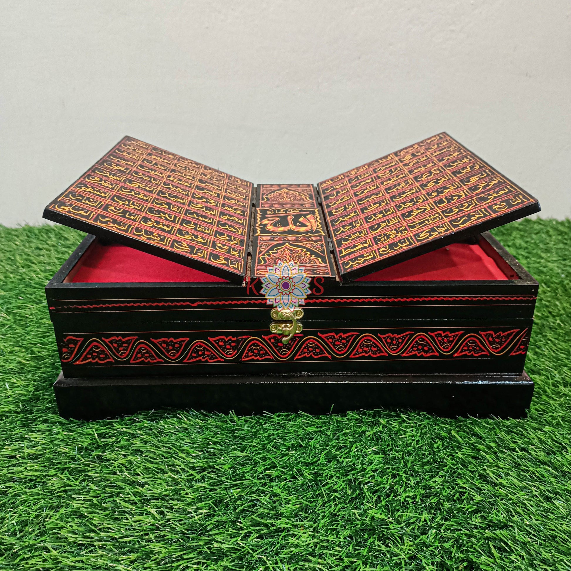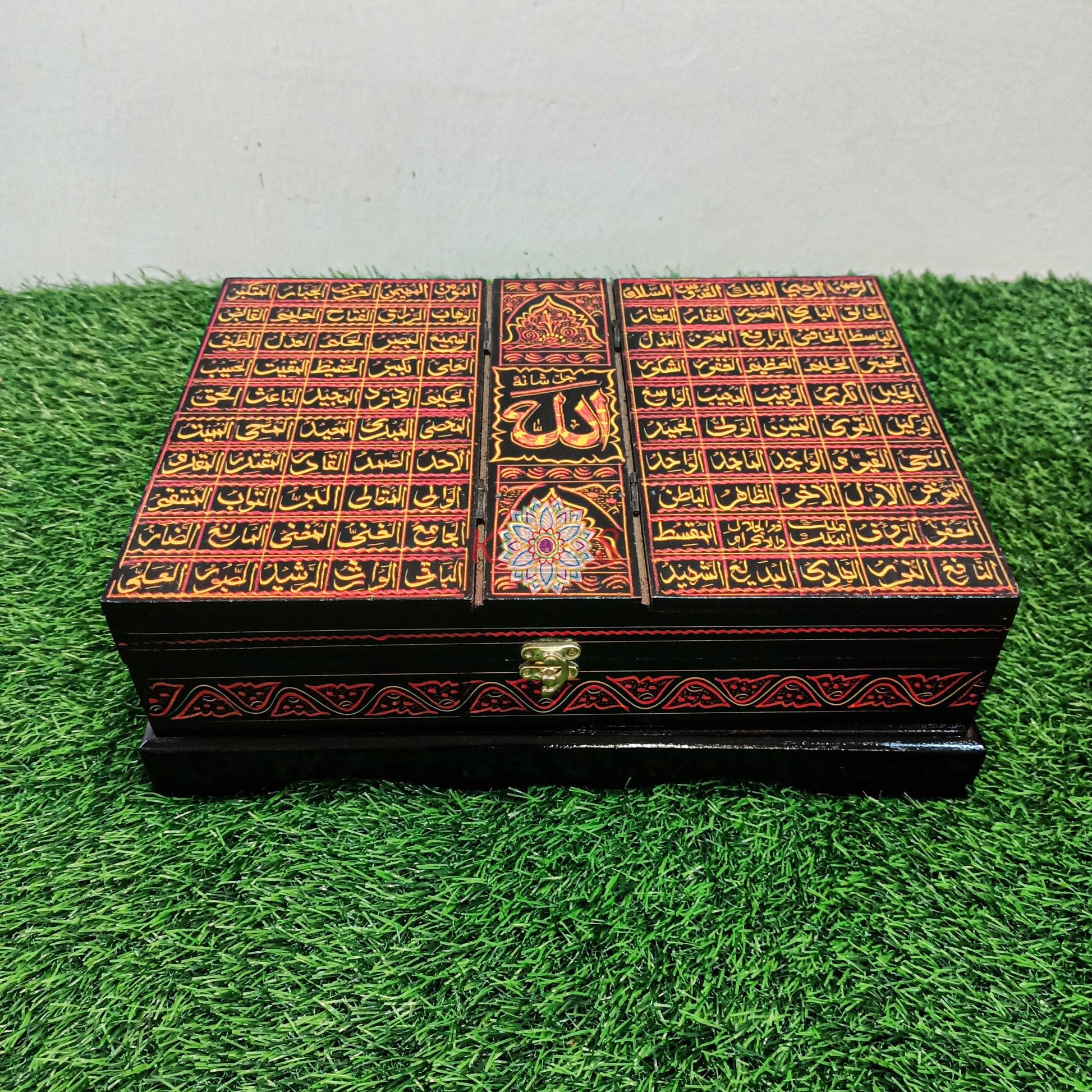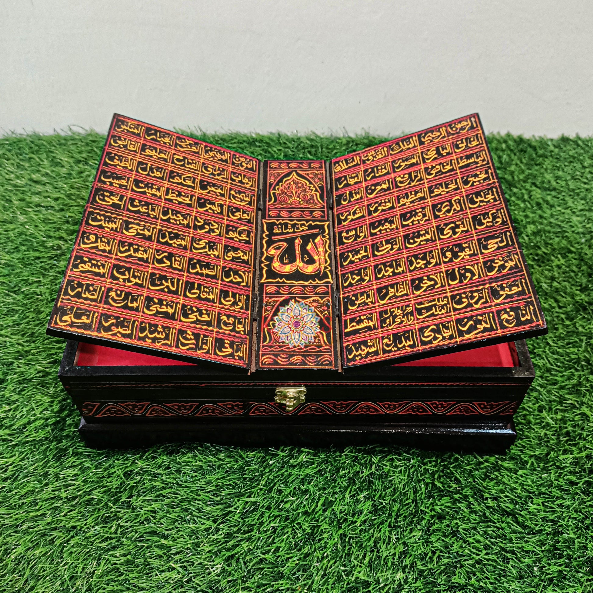 HOW IT WORKS: This handmade hand carved wooden Quran box is easy to use.