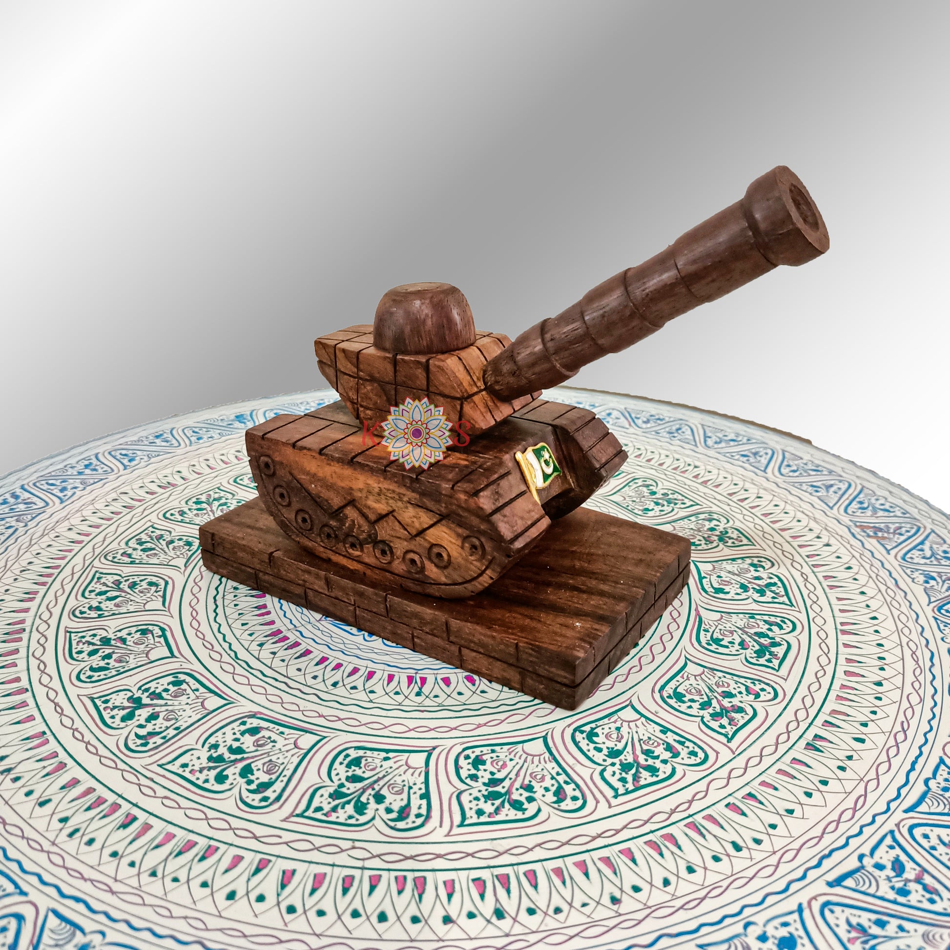 The "Mini Decorative Toop" is a beautifully crafted decorative item made from pure wood, entirely handmade in Pakistan. This miniature ship captures the essence of nautical charm and brings a touch of maritime elegance to any space.