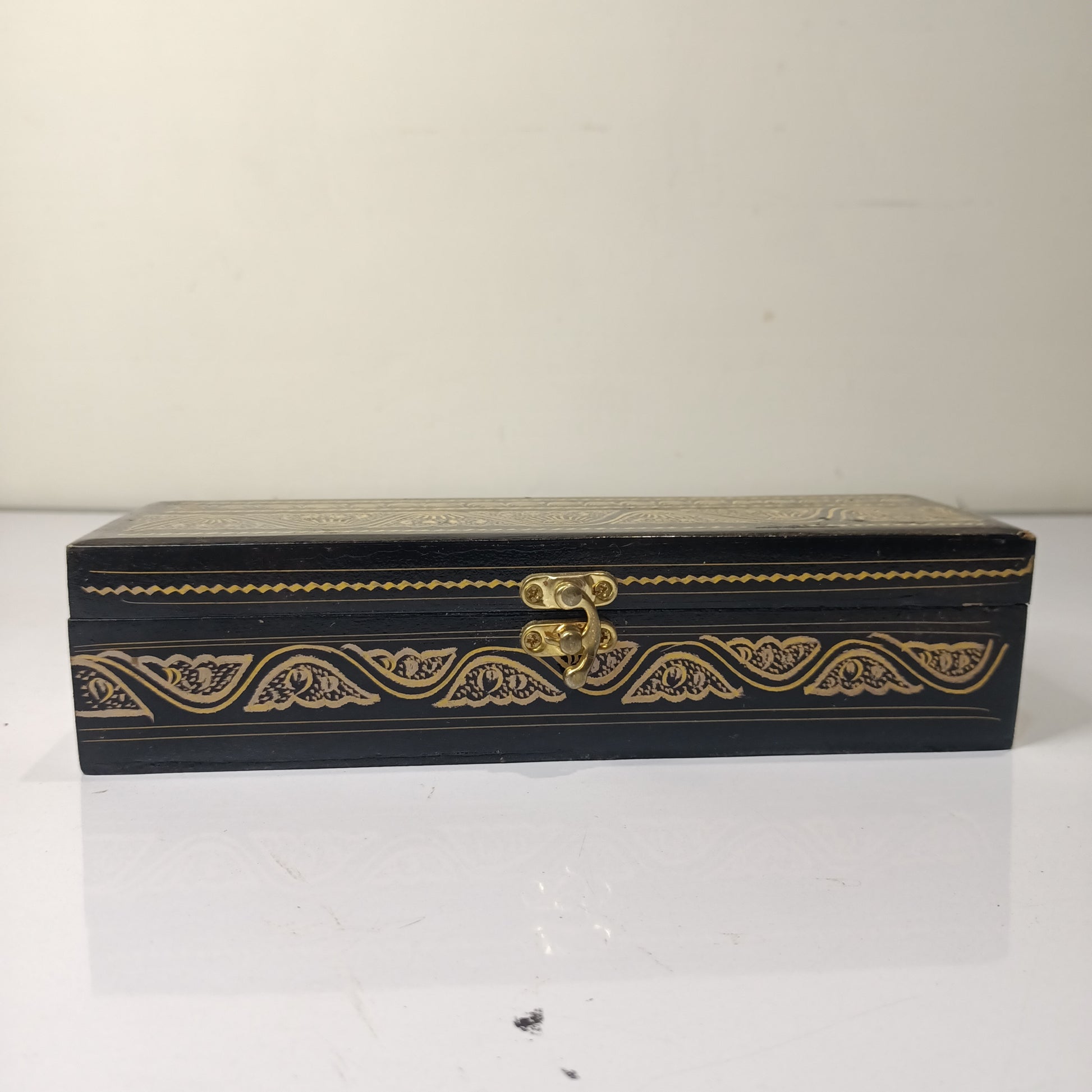 Look no further than Krafts Store's Unique Naqsahi Jewelry Box! This handmade jewelry box is crafted from pressed MDF and features enough storage, measuring 9 x 3 inches. The box is adorned with beautiful scratching art ( Naqashi ) and boasts a soft cloth interior to protect your jewelry from humidity. The Black & Gold Naqsahi Jewelry Box is the perfect way to store and show off your favorite pieces, and makes for a great gift for your loved ones.