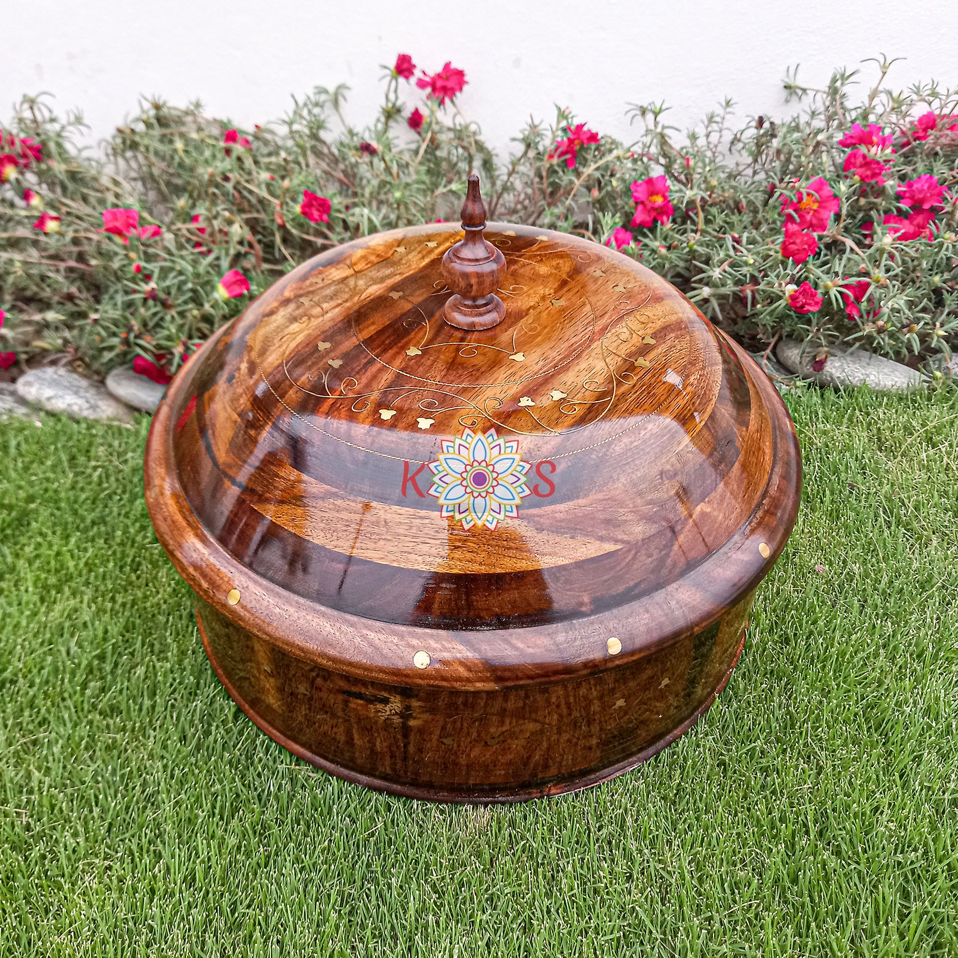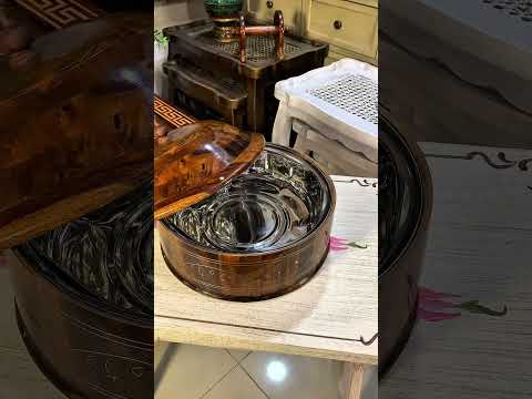 A handmade wooden hotpot with a steel bowl and brass work is a traditional cooking vessel that is commonly used for preparing and serving hotpot dishes. It is made of natural materials like wood, steel, and brass, and is often crafted by skilled artisans using traditional techniques.