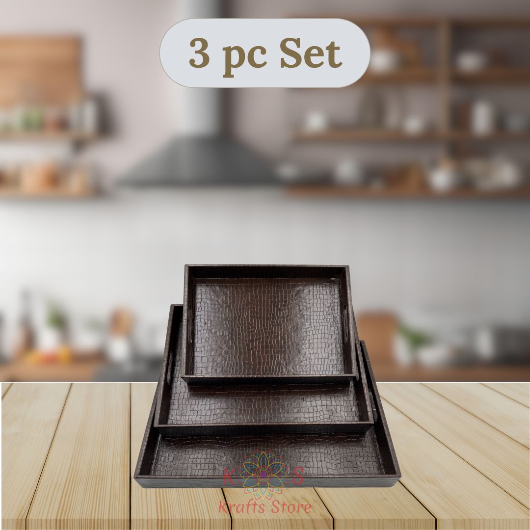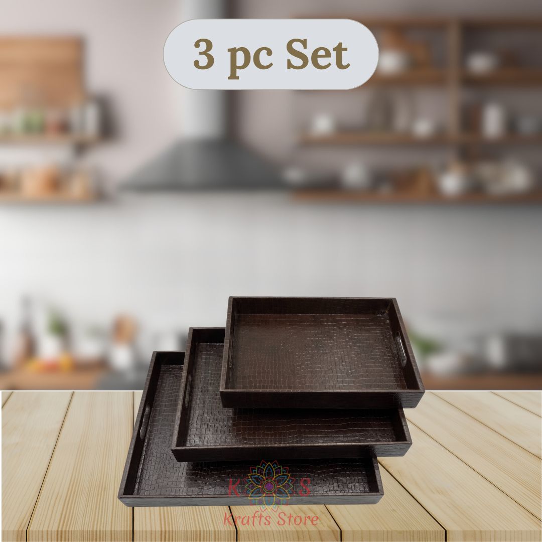 Serving Trays Set Of 3 Leather (Dark Chocolate Brown)