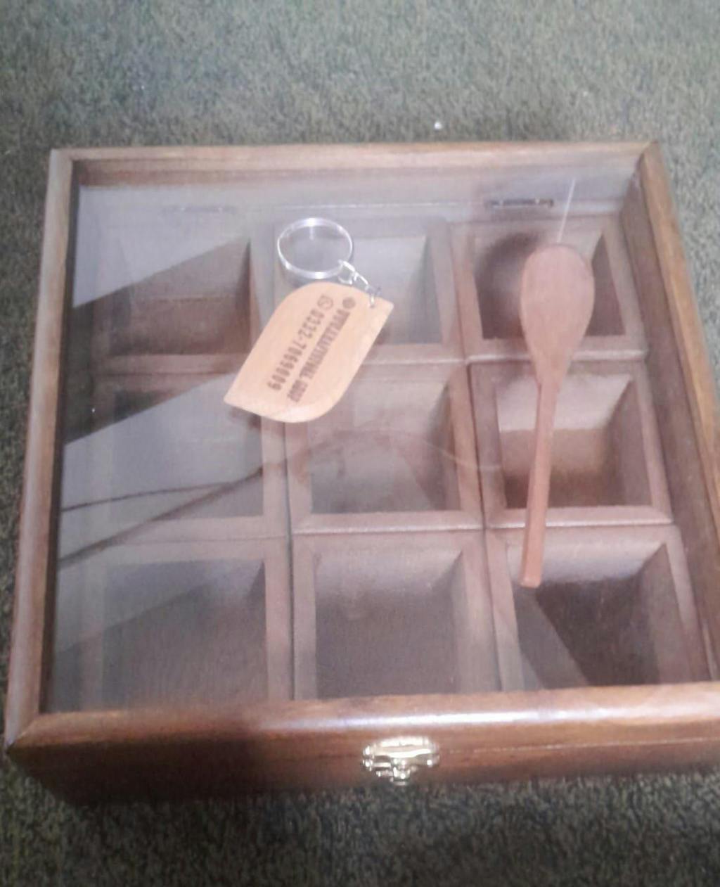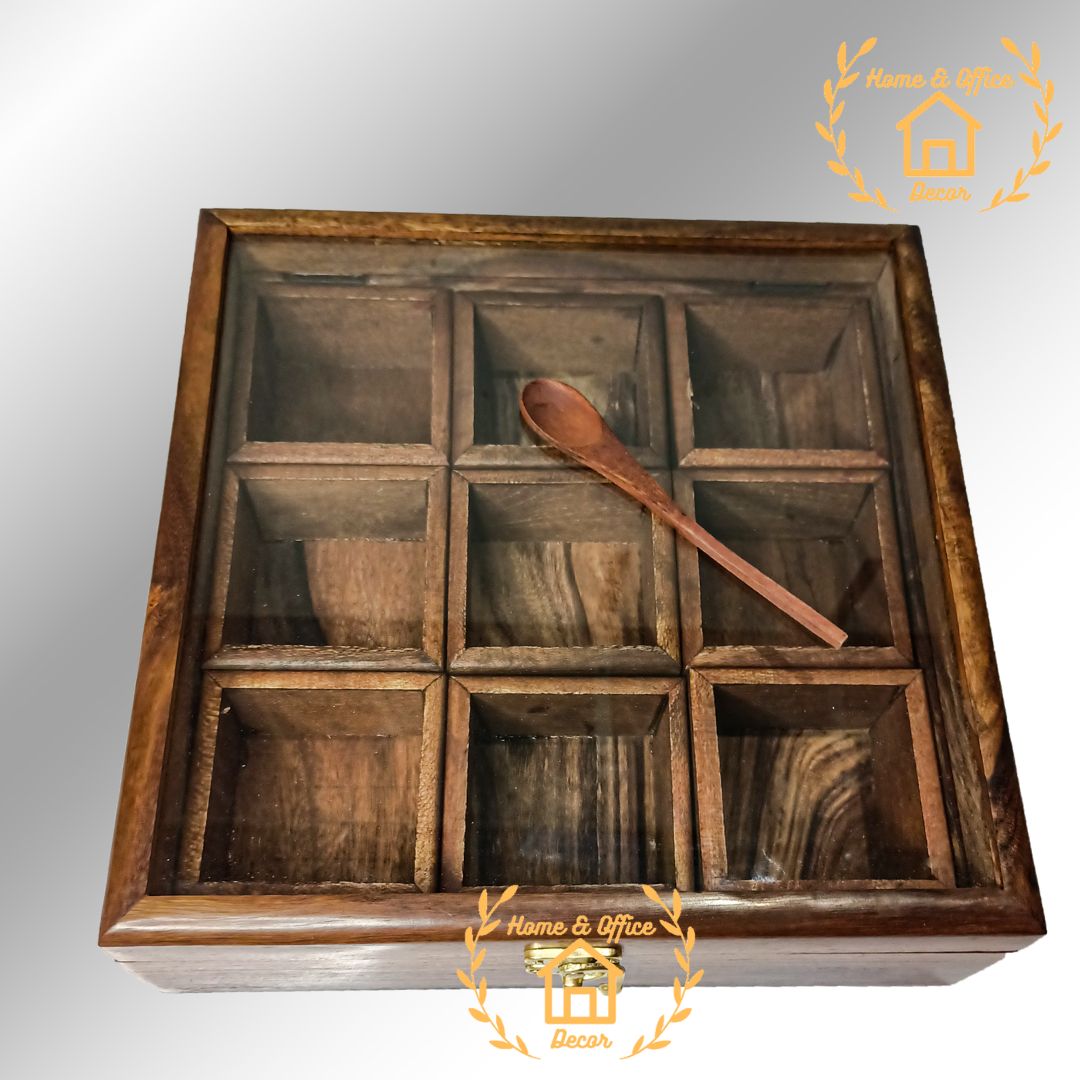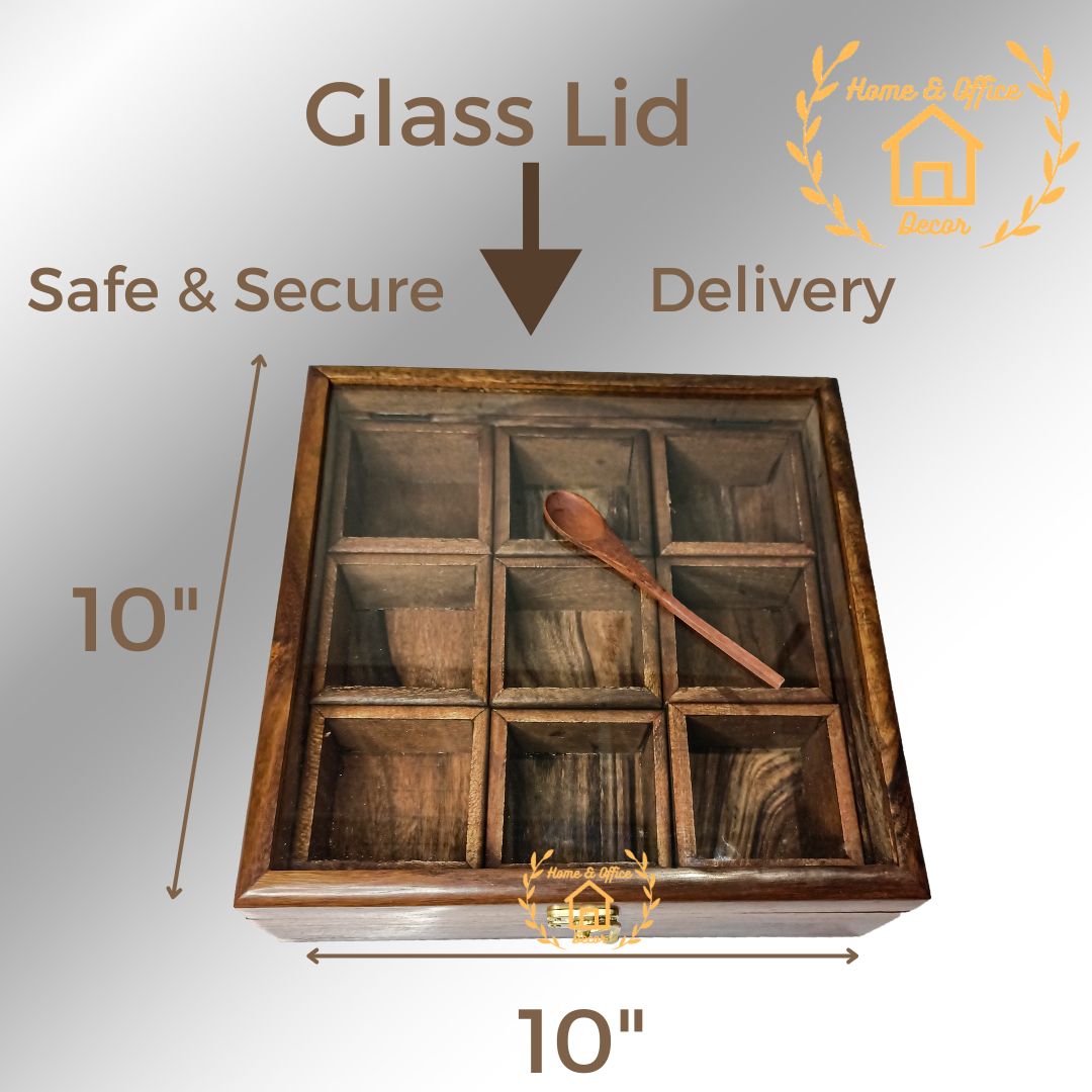Look no further than this stunning hand carved wooden spice container. With a size of 10 x 10 inches, it is perfect for storing spices and other small items.