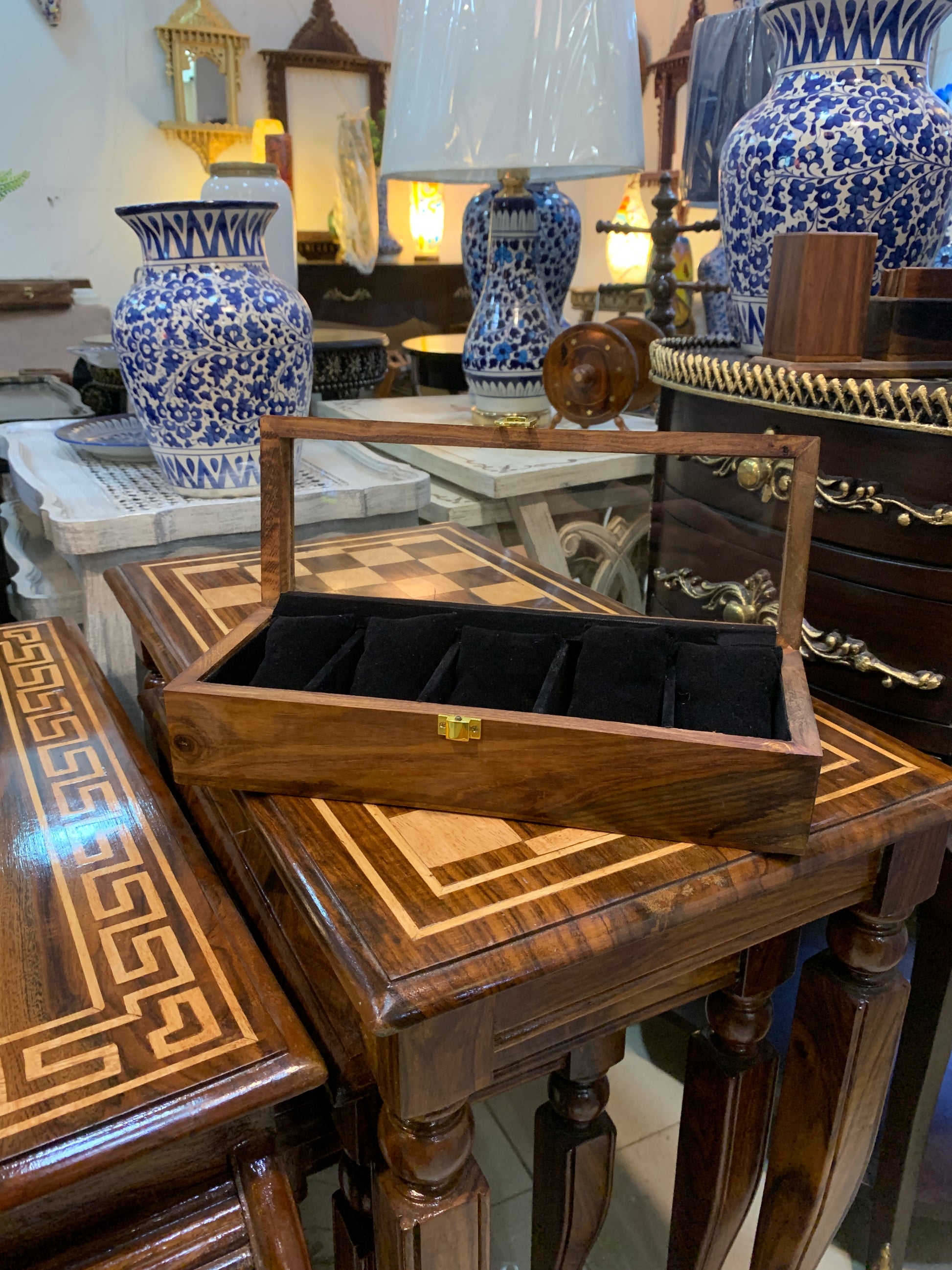 Watch box for 5 Watches with Glass Top