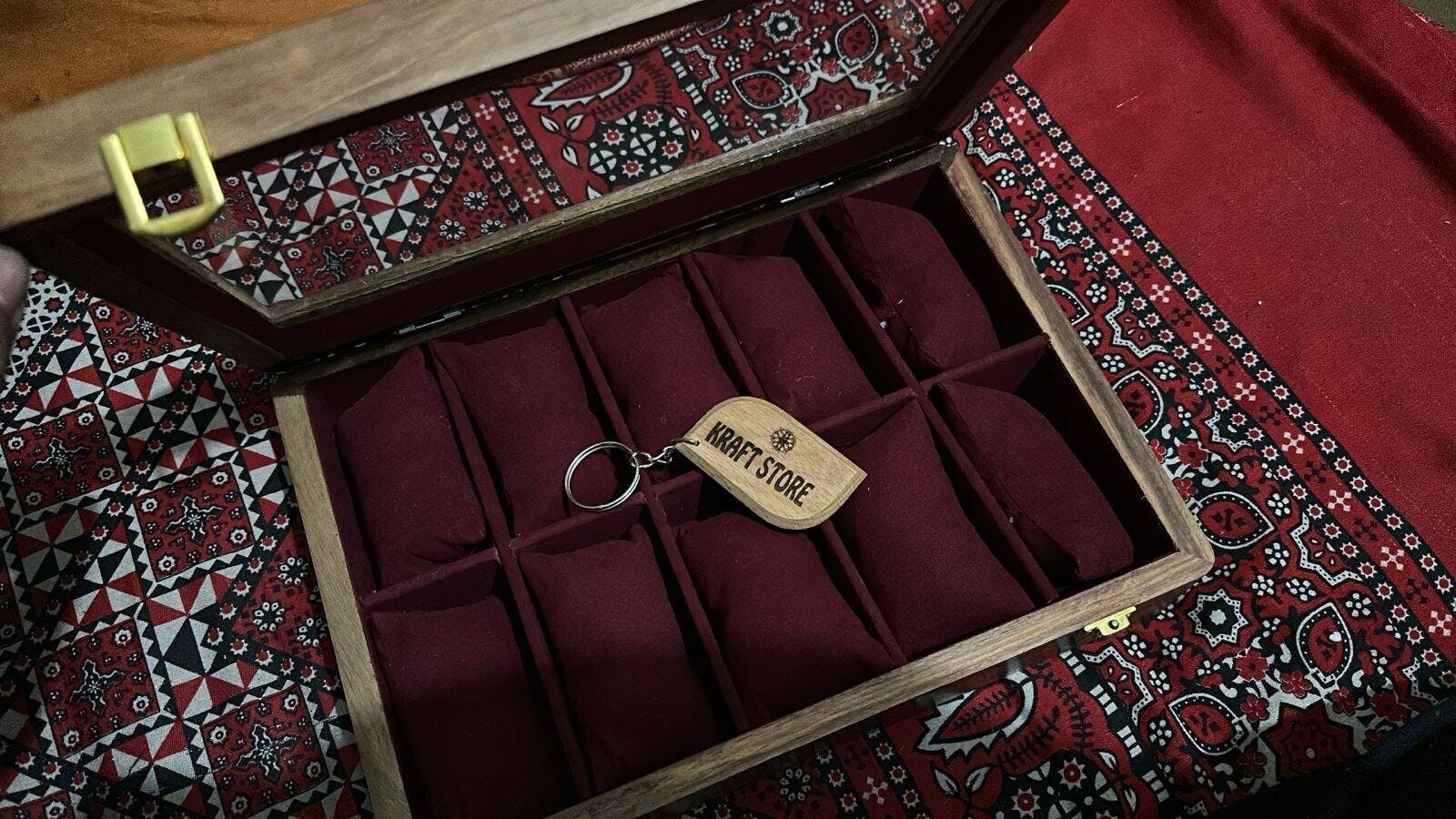 Our elegant Watch Box, designed to securely hold and showcase your prized timepieces. This box has a capacity of 10 watches, offering ample space for your collection. Crafted from premium Sheesham wood, it features a sleek glass lid that provides a clear view of your watches while protecting them from dust and damage. Measuring 12.5 x 8.5 x 3 inches, this watch box combines functionality with sophisticated style, making it a perfect addition to any dresser or nightstand.