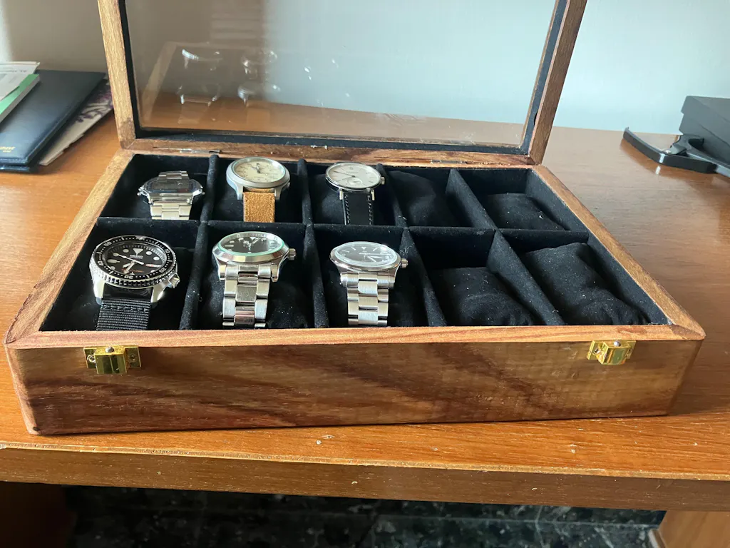 This is a good storage box and is definitely worth the price. It looks quite nice, though I would have preferred to pay an extra 1-2k rupees and have an excellent product. There are small details which can be improved. For starters, the wooden edges on the inside of the box are rough and could have been smoothened/sanded. The pillows should also be square rather than rectangular, as certain watches will be hard to wrap around these oblong shaped pillows and will squish them. The glass on top should also be raised slightly higher, as thicker watches or ones with large bezels sometimes hit against the glass when closing the box, because it is set too low. The glass also arrived looking dirty. These are small details that separate a good product from an excellent one.